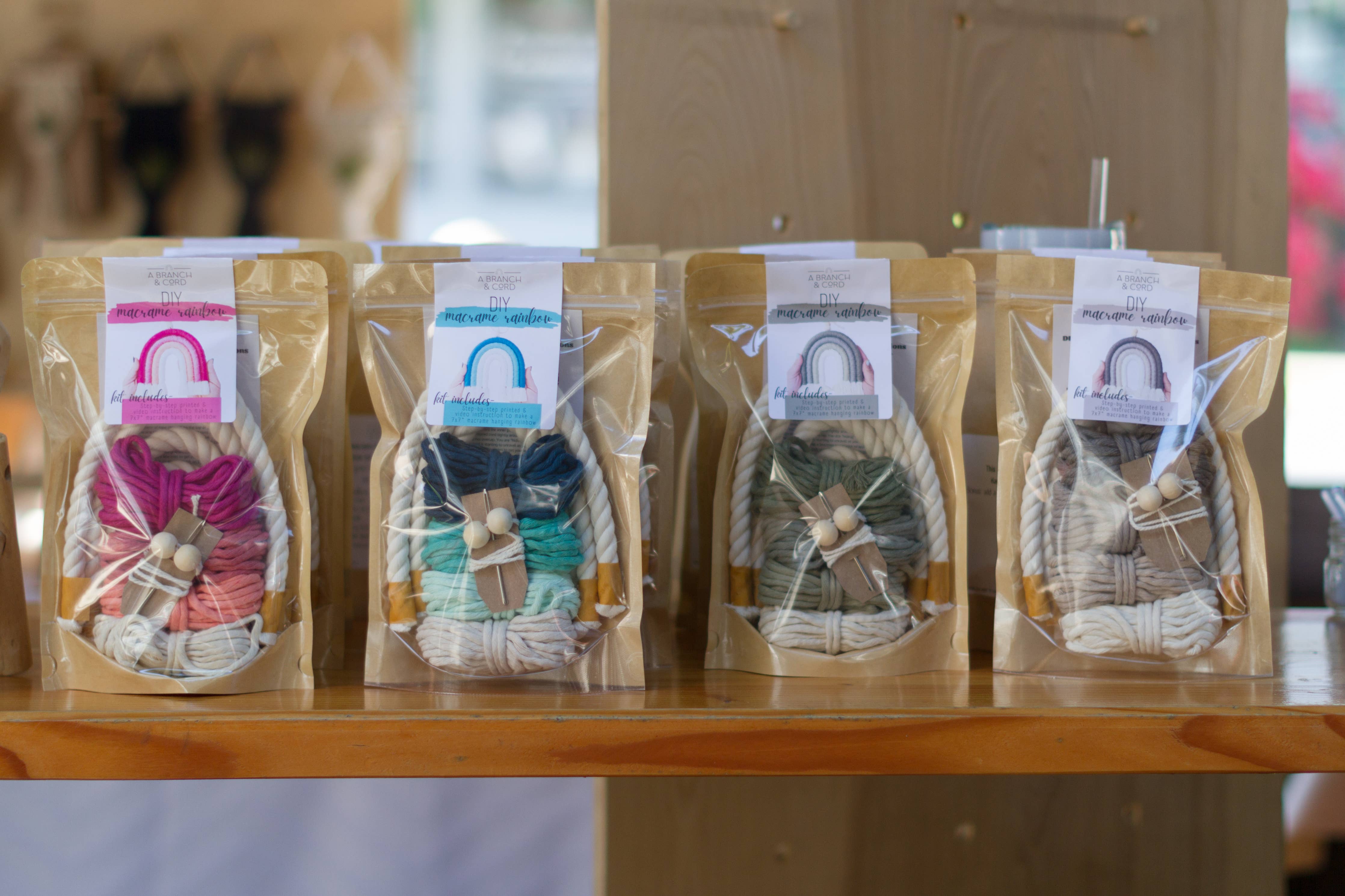 Our DIY Rainbow Kits offer a fun crafting experience that brings the joy of fiber art and vibrant colors together for both adults and children ages 10 and up or 4 - 9 with support. While the kit includes macrame cord, no macrame knotting is required in this kit! Simply the act of wrapping is needed to complete.